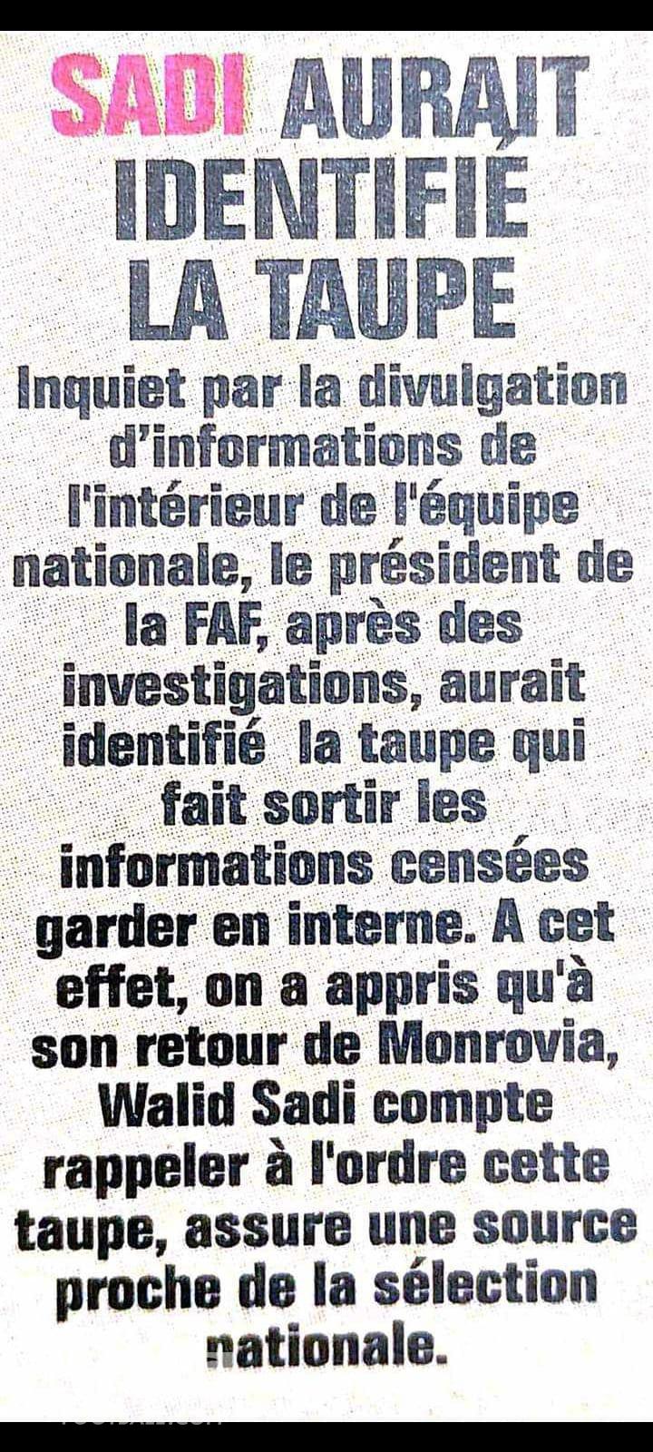 Selon le journal Compétition qui cite une source proche de la sélection, après plusieurs investigations en interne, Sadi aurait finalement identifié la personne à l’origine des récentes divulgations. Les informations confidentielles, censées rester au sein du groupe, se sont retrouvées dans les médias, créant une atmosphère tendue au sein du staff et des joueurs.