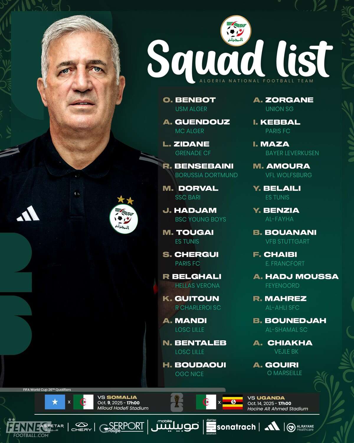 Algérie Foot – Le sélectionneur national Vladimir Petkovic a annoncé, ce jeudi 2 octobre, la liste des joueurs convoqués pour le stage d’octobre.